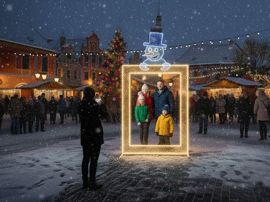 Představte si kouzelný okamžik – děti i dospělí se smějí, zapózují vedle rozzářeného fotorámu, zatímco z jeho vrcholu vykukuje hravý sněhulák. Tento vánoční fotokoutek je dokonalým místem pro vytváření vzpomínek a sdílení na sociálních sítích!