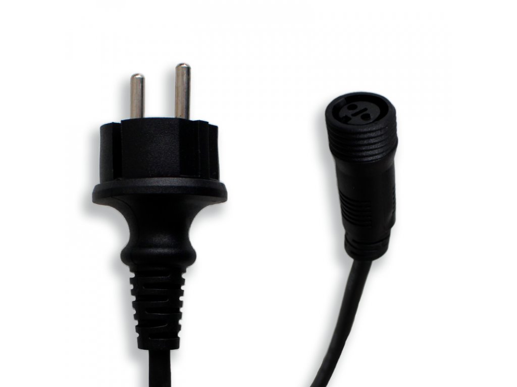 Napájecí kabel je 1,3 m dlouhý a je ukončený exteriérovou vidlicí.