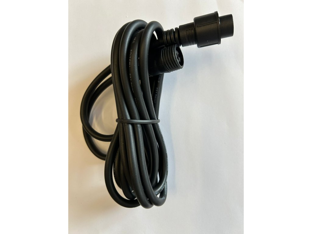 Prodlužovací kabel určený pro světelné řetězy, délka 1 m, černé provedení. Vhodný pro venkovní použití.