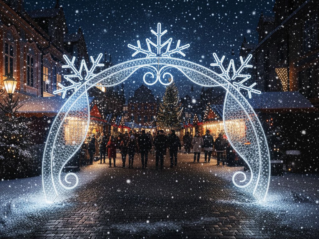 🎄 Vánoční LED průchozí brána s vločkami je ideálním prvkem pro obce, města a technické služby, které chtějí vytvořit atraktivní sváteční atmosféru. Skvěle poslouží jako dominantní vstupní brána i jako fotopoint, kde si návštěvníci pořídí krásné zimní fotografie.