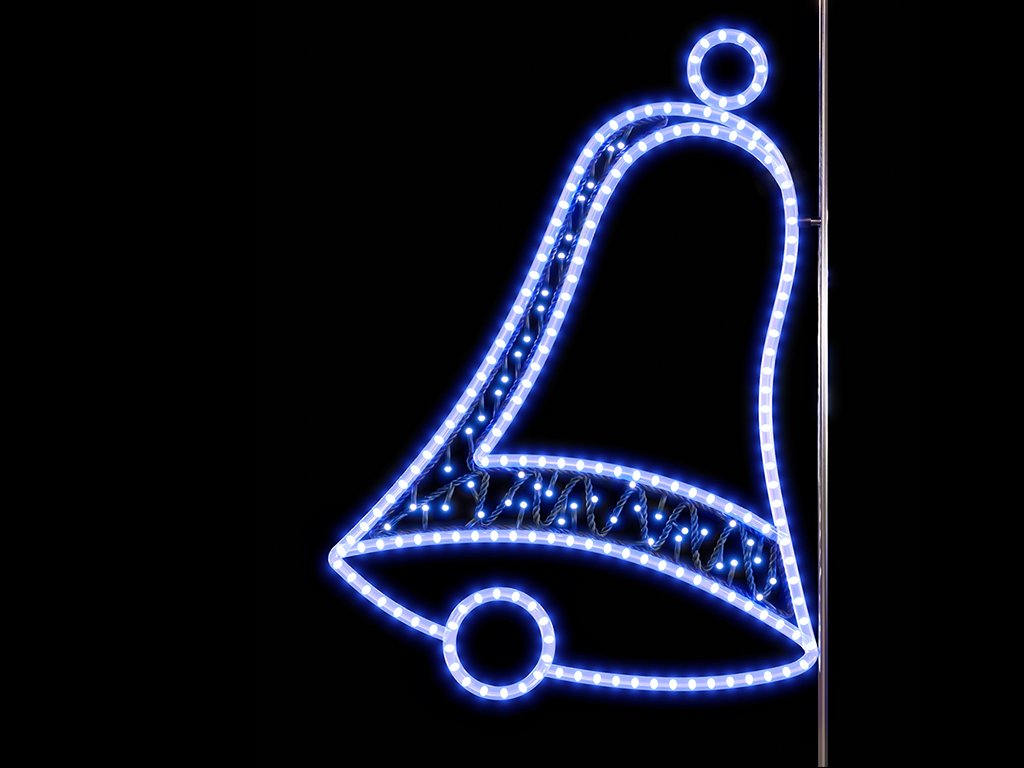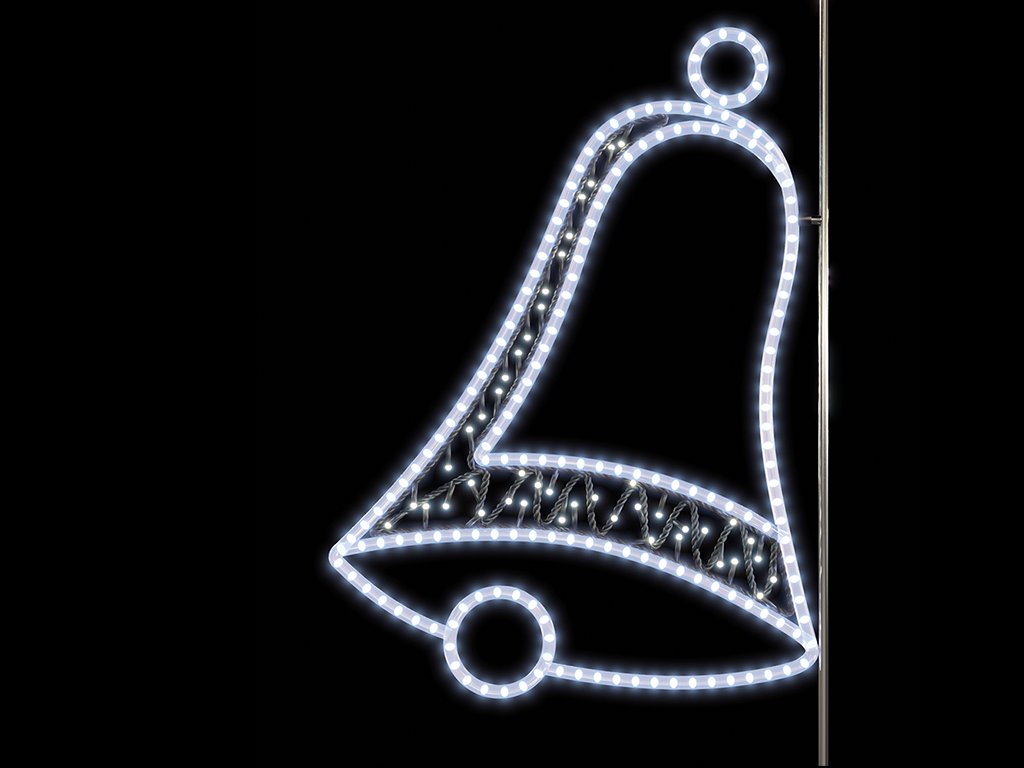 Vánoční dekorace na sloupy veřejného osvětlení Zvon 2, 120 cm, je kouzelným symbolem Vánoc, který rozzáří každou ulici. S precizně zpracovanými detaily, LED řetězem a moderní LED technologií, která šetří až 70 % energie, vytvoří v ulicích nezapomenutelnou vánoční atmosféru, která přitahuje pohledy kolemjdoucích.