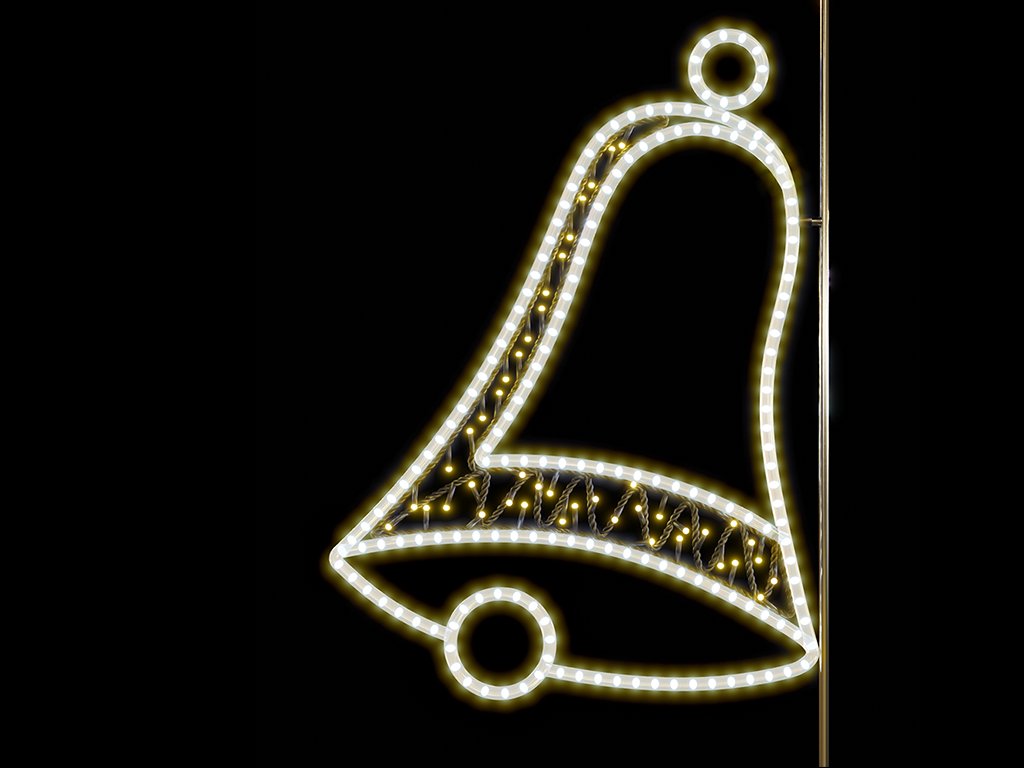 Vánoční dekorace na sloupy veřejného osvětlení Zvon 2, 120cm je elegantní a energeticky úsporná volba pro veřejné prostory. Díky moderní LED technologii a LED řetězu, který dodává dekoraci zářivý efekt, šetří až 70 % energie a nabízí dlouhodobé vánoční osvětlení, které přitahuje pozornost. Tento design je detailně propracovaný a přináší dynamický a kouzelný vzhled viditelný z více stran. Zvon 2 lze snadno upevnit na sloup veřejného osvětlení, kde jeho světelný efekt a pečlivé zpracování vyniknou.