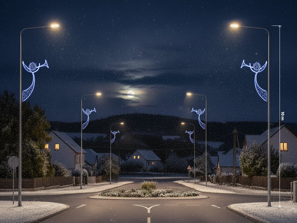 Vánoční dekorace na sloupy veřejného osvětlení Anděl 3, výšce 220 cm, je kouzelným symbolem Vánoc, který rozzáří každou ulici.