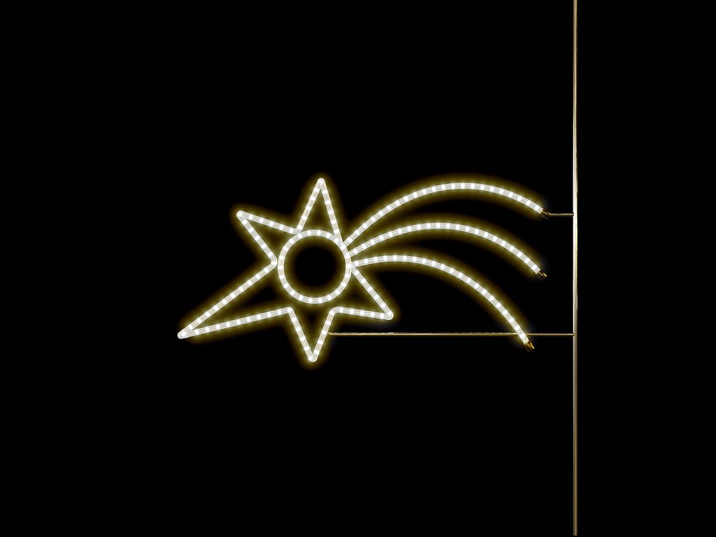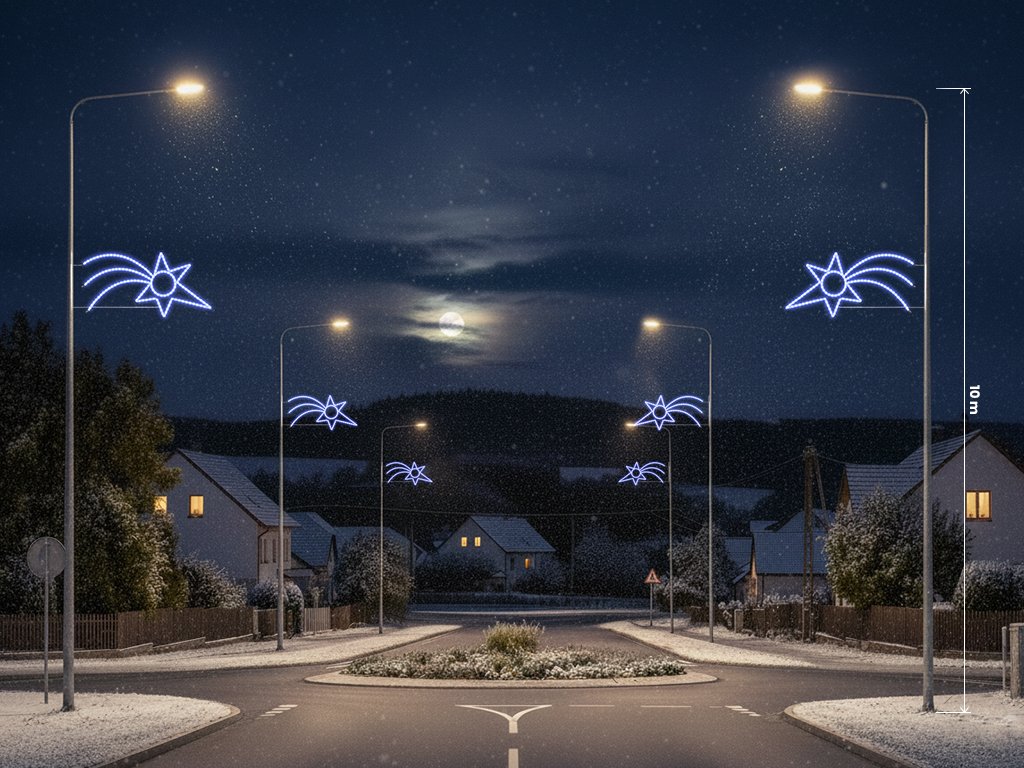 Vánoční dekorace na sloupy veřejného osvětlení Kometa 2, 200 cm, je elegantní a energeticky úsporná volba pro veřejné prostory. Díky moderní LED technologii, která šetří až 70 % energie, nabízí efektivní a dlouhodobé vánoční osvětlení, které přitahuje pozornost. Tento design je detailně propracovaný a přináší dynamický a kouzelný vzhled viditelný z více stran. Kometa 2 lze snadno upevnit na sloup veřejného osvětlení, kde její zářivý efekt a pečlivé zpracování vyniknou.