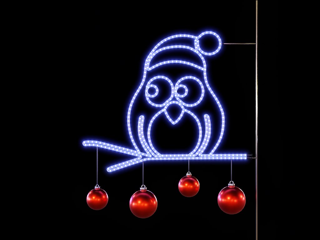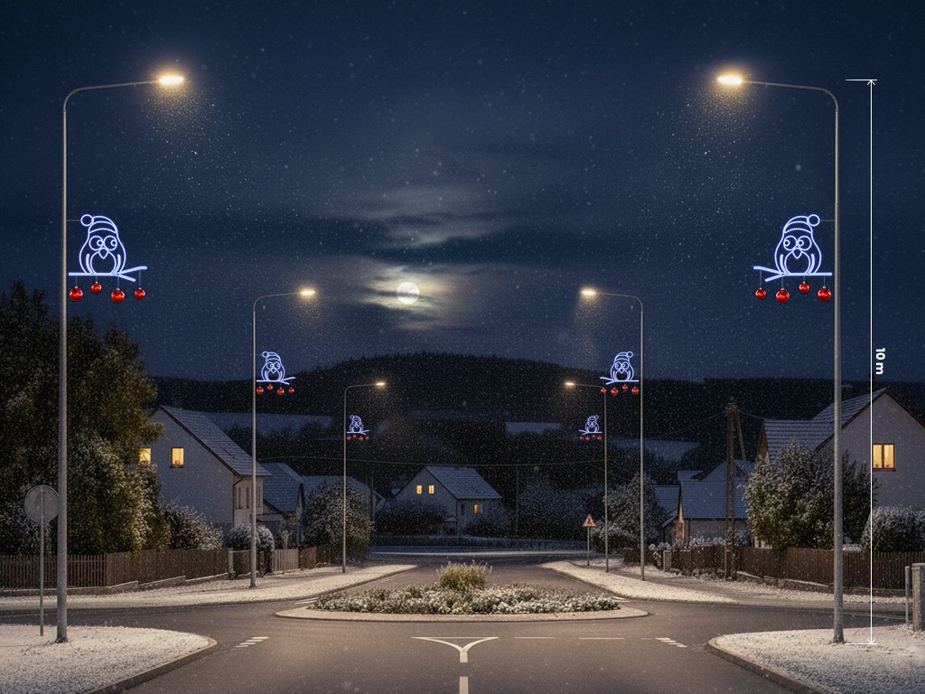 Vánoční dekorace na sloupy veřejného osvětlení Sova, výšce 130 cm, je kouzelným symbolem Vánoc, který rozzáří každou ulici. S precizně zpracovanými detaily a moderní LED technologií, která šetří až 70 % energie, vytvoří v ulicích nezapomenutelnou vánoční atmosféru, která přitahuje pohledy kolemjdoucích.