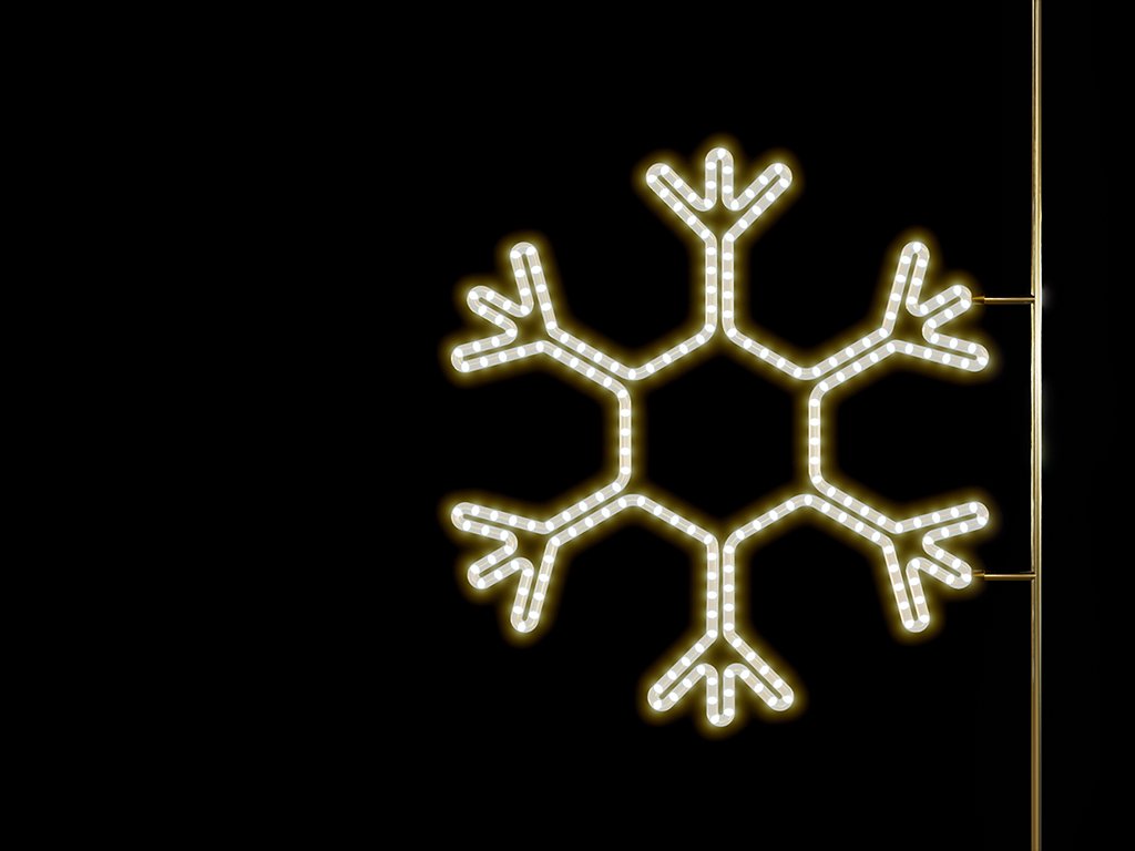 Vánoční dekorace na sloupy veřejného osvětlení Vločka 2, 100 cm je vyrobena z kvalitní slitiny hliníku, což zajišťuje lehkost, pevnost a vysokou odolnost vůči korozi. Díky moderní LED technologii, která šetří až 70 % energie, poskytuje tato dekorace efektivní a dlouhodobé osvětlení. S elegantním designem, který okouzlí každého kolemjdoucího, vytvoří nezapomenutelnou vánoční atmosféru ve veřejných prostorech. Vločku 5 lze snadno upevnit na sloup veřejného osvětlení, kde její detailní zpracování a zářivý efekt vyniknou.