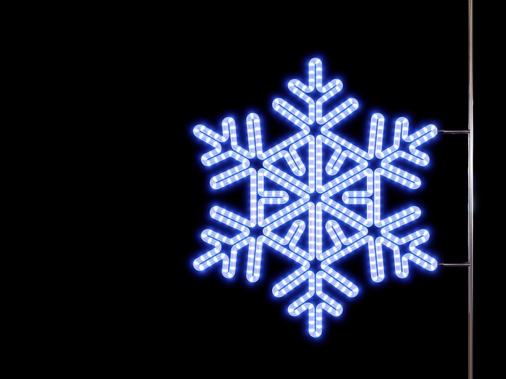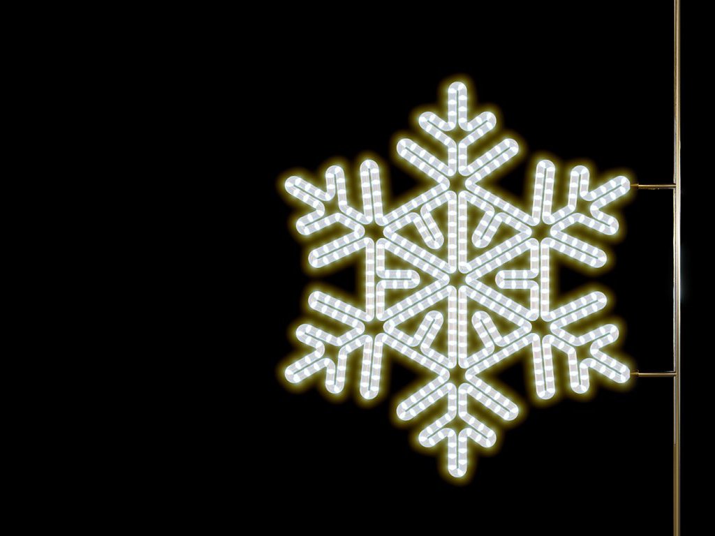 Vánoční dekorace na sloupy veřejného osvětlení Vločka 4, 100 cm je vyrobena z kvalitní slitiny hliníku, což zajišťuje lehkost, pevnost a vysokou odolnost vůči korozi. Díky moderní LED technologii, která šetří až 70 % energie, poskytuje tato dekorace efektivní a dlouhodobé osvětlení. S atraktivním designem, který přitahuje pozornost, přinese do veřejných prostor nezapomenutelnou vánoční atmosféru. Vločku 4 lze snadno upevnit na sloup veřejného osvětlení, kde vynikne její detailní zpracování a zářivý efekt.